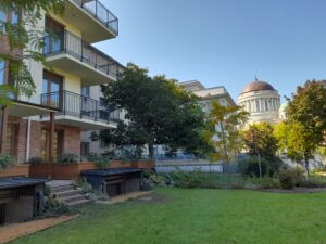 A Győrffy István utca az egységéről, kertvárosi megjelenéséről és nyugalmáról híres Józsefvárosi Tisztviselő telepen található. A környék kialakulásáról és múltjáról, építészeti és városrendezési jelentőségéről az Urbanista blogon található egy rövid de annál érdekesebb cikk.